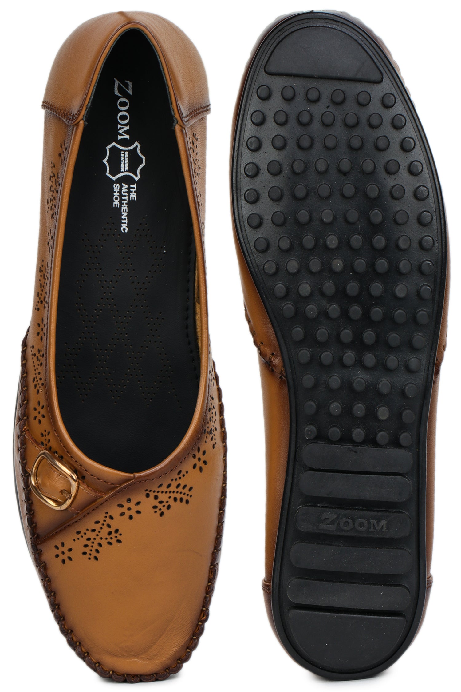 Women’s Genuine Leather Textured Bellies with Buckle Accent - 1633