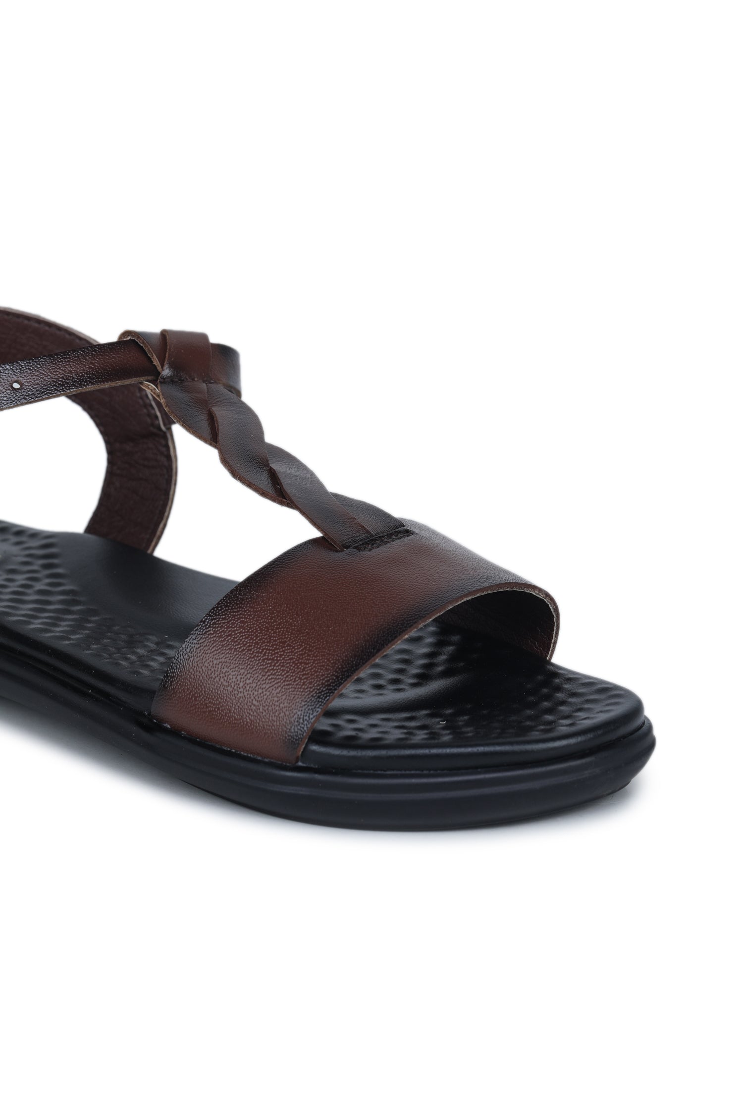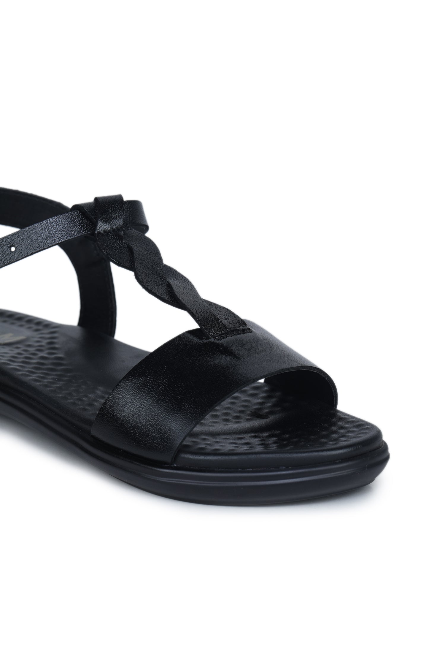 Women’s Genuine Leather Braided Strap Casual Slip-On Sandals – Black - L424
